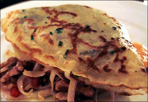 ... is a wonder. Crusty slices of warm-bellied life staff were so good that I would have been happy to stick with this, a slice of cheese and some red wine. A crepe ($11.00):
