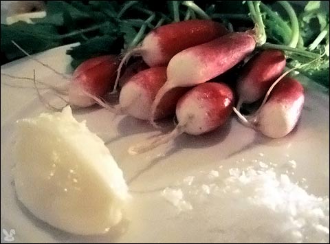 ... which were plump, sweet, rich fruity footballs stuffed with Gorgonzola and circled with aged balsamic. Although delish, I wish we ordered them for dessert. This isn’t the sort of starter that entices you to escalate in richness and flavor since it feels like you’ve already crossed the finish line. We revived our dated palates with some radishes ($5.00):