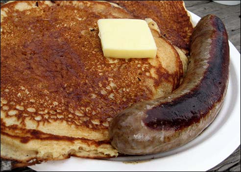 next to the fluffy flapjacks. Eating breakfast outside in the overcast