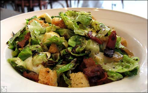 There was no wait at Pizza Antica for lunch today. Although there were only about a fifth of the tables filled, the tile floor and hard surfaces of the dining room made for an outdoor voice discussion level. The waitress touted the deliciousness of the Brussels sprout salad ($8.95):