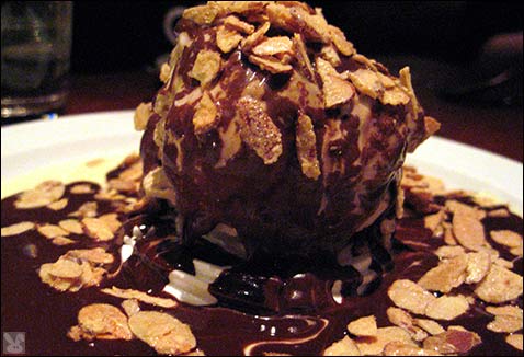 to eat it? My guess is that they would…with a side of rice. ... (one of the best desserts in SF) with a side of CocoCups: These are Coco500’s version of peanut butter cups, except crunchy. They are a fantastic chocolaty complement to the always incredible ice cream and meringue dessert enrobed in chocolate sauce and scattered with candied, slivered almonds. Check out Chubby’s earlier review of Coco500 (which the people at the restaurant must not have read since they still offer no toilet seat covers and what is up with the cheapo single ply TP that is always to be found confettied on the bathroom floors?) They get a D in paper products, but an A in food. I guess if they ply us with food it makes up for the lack of plies in the paper…