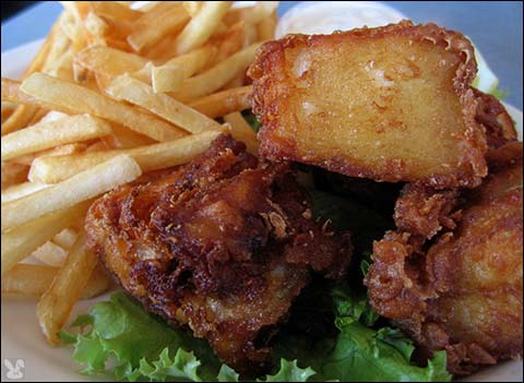 This funky eatery at the San Rafael marina has dog friendly, patio seating. There are families, locals and boaters who frequent this casual breakfast and lunch diner. My fish and chips ($9.95): ... came with tartar sauce which I bypassed in favor of the malt vinegar. The chunks of fish had a crunchy, golden brown armor shielding moist and tasty cod blocks. The chips were thinner than my personal preference for this dish, but they were still fine. Customers are treated with a hometown friendliness that is scarce these days. They serve up burgers, sandwiches and breakfast efficiently and with a smile. It may not be destination dining, but it’s a good place to relax and have some simple, no frills chow. Leave the American Express at home it’s cash only, but you won’t need that much of it with only one menu item that’s over a tenner (the NY strip steak and eggs $10.55.) Bobby’s Fo’c’s’le