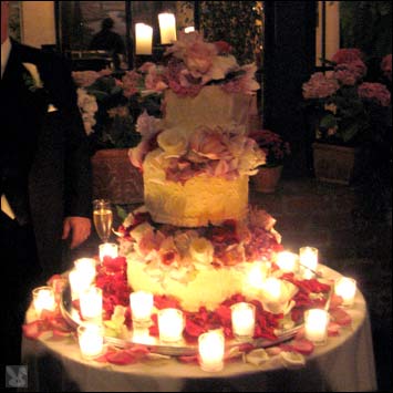 There wasn't a dry eye in the house for C&W's wedding. Champagne, music and a feast followed a beautiful ceremony. The cake was a flowergarden with berries hidden between the light layers of delicious white chocolate encased tiers. A wonderful time was had by all as an accordian led the newlyweds singing into the night. -G