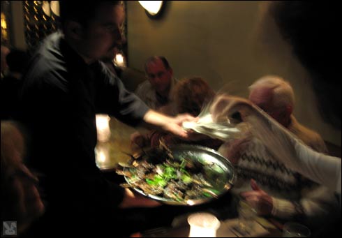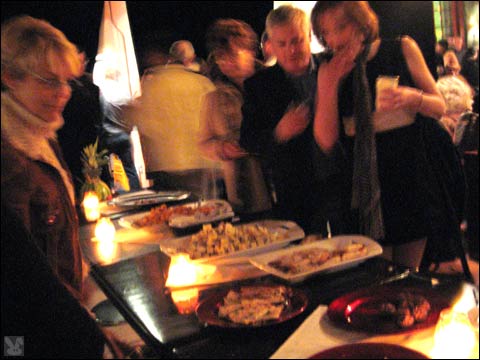 January 7, 2007 Picks and Pan’s Guillermo Del Toro made a cool movie called Pan’s Labyrinth. We were blown away not only by the storytelling, but also by its disregard for the concept of a target audience. Who’s going to take their kid to see a film about a child who slips into a world of fantasy with graphic violence set during the Spanish Civil War? Gorgeous cinematography, brilliant acting, editing and CG. It gets top marks in our book. We saw a couple other films today that don’t even warrant discussion after seeing this cautionary tale of frog wrestling and helping yourself to the buffet when you really should know better. Tonight’s buffet looked duller than a documentary about drying paint but the plot thickened when the passed hors d’oeuvres began to circulate.