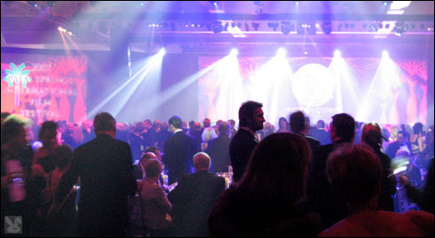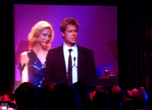 ... the sheer number of mouths to feed and getting hot things to the table while they are hot. It’s like airline food without the plane. Not only is it difficult for the kitchen, it’s a pain for presenters to have to compete with the food and dinner conversation. I felt bad for the people who were delivering their speeches between the entrée and dessert. And then there was a tsunami of people who split right after Brad Pitt left the podium (and there were more honorees to come.)