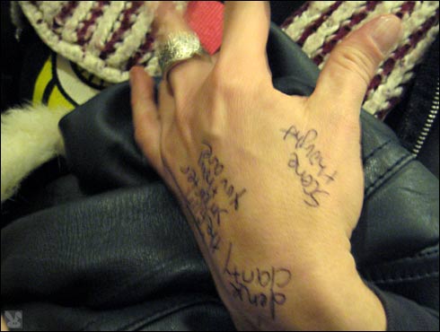 We screened our film this evening and there was a lady who it made enough of impression on that she took notes on her hand: