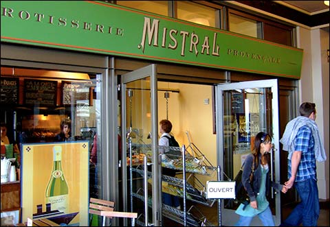 Sunday, June 10, 2007 Mistral cycle Circulating chickens are hypnotic in their spiral of rotation towards mastication. It is a scientifically proven fact that food in movement becomes a gagillion times more desirable than their stationary cousins. Passed hors d’ouevres, conveyer belt sushi, pie go rounds in bakeries bring out our primal hunting urges. The dizzy birds at the San Francisco Ferry Building’s Mistral Rotisserie: