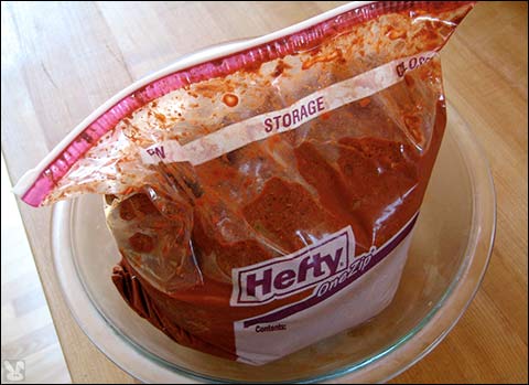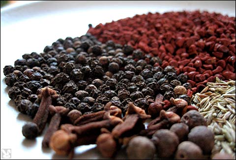 ... in the same hidden strip mall as Taqueria Bahia India Village and Apadana in order to get our banana leaves ($1.50) and 2 packs of annatto seeds (.69¢ each.) Robert Rodriguez’s Puerco Pibil:
