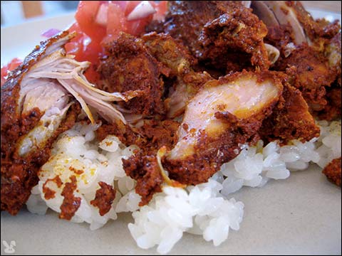 ... waved me down their bronzed wings. I ordered the quarter rotisserie chicken plate ($6.75):