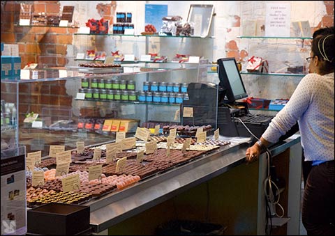 Not only do they make child-safe varieties (like their luscious peanut butter filled butterflies): .. there are also ones that they infuse (and pair) with Teance Tea: ... as well as a parade of fruity, nutty and caramel-filled nuggets. They even make moutho-degradable boxes with edible chocolate artwork – the ultimate in green packaging. After you spend this week camped out in line for your new iPhone, you will be in the mood for a culinary treat. If you have been shy about visiting the Charles Chocolate Bar: ...there is no better time than next Saturday. You can taste their goods, scope out their new enrobing machine and sync up a different kind of pod to your cereal port.