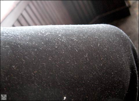 ... disintegrate like a Listerine strip for your lap. The dine-druff transferred during the normal use of this crumby shield: