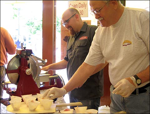 ... and chunks of the Pasta Shop's pork sausage were also dispensed to the kosher-free crowd who seemed happy to sample these porky products before hooving it out the door.