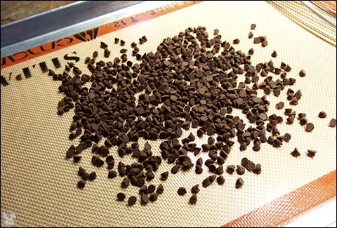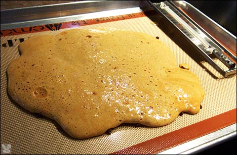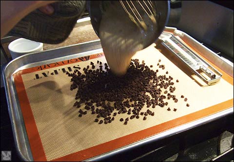 You can make honeycomb candy plain: ... or pour it over chocolate to produce an imitation Crunchie Bar. Place a silpat on a cookie sheet and sprinkle with ¼ cup chocolate bits (if desired):