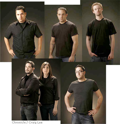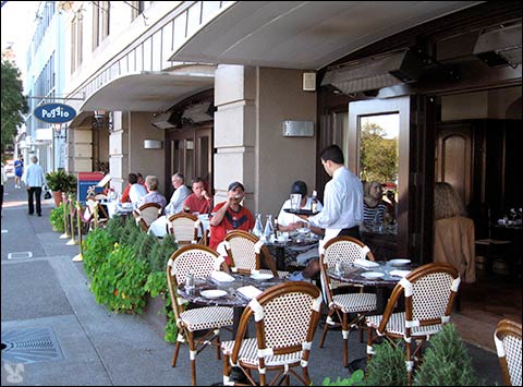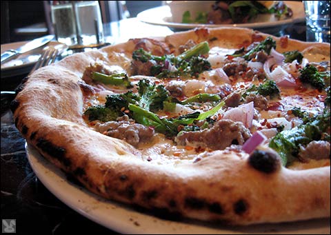 Wednesday, March 5, 2008 permalink Did you see the San Francisco Chronicle’s New Rising Star Chefs of 2008? Doesn’t it look like each one of them wants to personally kick your ass? It’s the “hospitality industry” not the “hospital-ity industry.” Rising stars? More like seeing stars after they batter and fry you up. I recognize some of them from my local Fight Club so I wouldn’t order the clam chowder or the meringues… After being lambasted at Poggio in the past, we sheepishly returned to see if their agnello sandwich ($13.00): ... had sprung back from the unfortunate gristle gob I got a while ago. Today’s spit roasted meat was a complete reversal in polarity from the last spin I took. This one was made with concern for the diner. The meat was of a better quality and the pesto was spread beyond the center of the bread. A definite improvement. We also split a fennel sausage pizza ($12.00): ... with broccoli di cicco, provolone, mozzarella and red onion. This thin crusted, nicely blistered pie had a nice ratio of toppings to crust with a good combo of flavors and textures. It was very good, but doesn’t knock Picco Pizzeria out of the top Marin ‘za position. After being put off at first, we’re glad we hopped back on the Poggio stick. We’ll have to come back for some of their house made pasta before the tourists overrun Sausalito (to get out of harm’s way of those badass San Francisco Rising Star Chefs.)