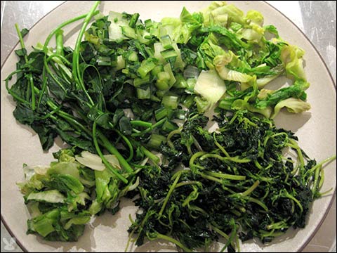 Friday, March 7, 2008 permalink We got a tip from Sue, a Bunrab reader, about cooking our nettles. Unfortunately, by the time we got her note, we have already powered through the entire bag of these prickly leaves: They were delicious in our cheese omelets: ... this morning. I just wish they peddled nettles at our local market since they are strangely addictive. Maybe they have a nettle exchange program at the park… We made a serious dent in the rest of the veggies for dinner and were inspired by the fennel fronds to make a fish purchase. I toasted some grains of paradise with cubeb and white peppercorns: ... before crushing them with some kosher salt. The salmon got a good coating of this spice mixture: ... a splash of vodka and a green muppet coating before I weighted it down and tucked it in the fridge. In a couple of days I will carve off thin slices of fish flesh – yum.
