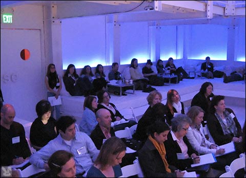 Friday, May 2, 2008 permalink We popped over the 1st annual Media Tastemakers Summit at the Supperclub. We've never attended a conference with beds for the attendees: This is actually a great incentive for the speakers to keep the audience engaged, especially since the organizers brought coffee only to discover that there was no coffee maker. Luckily, we arrived with our own joe to sip while listening to the Food & Wine and New Media session. The panelists included managing editor of Chow.com, Davina Baum, Tim Burton impersonator and VP of Foodbuzz.com, Doug Collister, Sophie Gayot of Gayot.com, and Nagaraju Bandaru of Boorah.com. During this hour long discussion panelists reflected on the internet's quick information cycle, new technologies such as semantic searches (which are context driven) and how user-generated content terrifies advertisers since these sites cannot guarantee that there will be only positive feedback of a paid sponsor. We sat with a couple friends and wondered why there wasn't a blogger on this new media food panel. We had to take off after this portion of the seminar, but it was interesting to see how the Internet is still such an ill-defined arena for many of its participants. -G