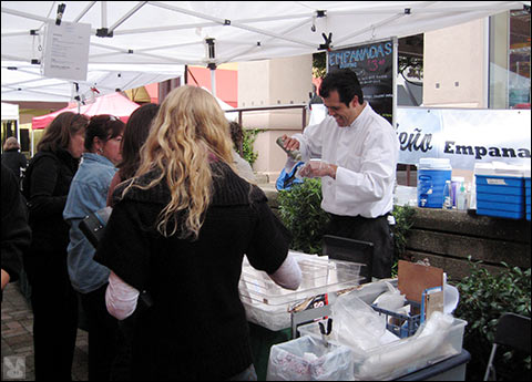 The recent genesis of Christian salt was to go against the grain of Kosher. This product is blessed by an Episcopal priest before they part with this sea salt, but I wonder if this will escalate into some sort of religious seasoning war by taking the further step of purchasing kosher salt and converting it. I guess there are consumers that want to exorcise a devils food cake or add a little ‘zazz to communion wafers but I don’t anticipate seeing a little alter endcap at The Pasta Shop. On the other punctured hand, there is a lot of local cuisine in the cult/religious category. So maybe there is a market for evan-sel-ical sales to flourish, but I’ll take this with non-denominational grain of salt. We flocked to the farmers market in time for the pastor of pastry: ... to turnover a beef and a chicken empanada ($3.00 each): He had nada of these empas on our last visit when we consoled ourselves with his cheese filled savory offerings. The spiced ground beef with pitted olives: was okay, but I found the hard boiled egg a little rubbery. The chicken and chorizo: ...had a nice chunky filling with some sweet raisins as an accent to the pleasantly spiced meats. Even though these big sellers are perfectly good, it turns out that we prefer to praise cheeses.
