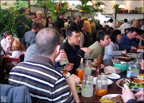 Whenever we go to M & Z’s we know that there will be no Sandra Lee recipes involved and the stage will be set befitting the chow. Z cured anchovies: ... to top a refreshing salad before we dug into the main event of a cassoulet: This ducky legume liaison had the revolutionary addition of prosciutto skin to the homemade duck leg confit and sausages. M’s cornmeal crusted plum galette: ... was made of fruit from their backyard tree which produces beet colored bubbles of acidically balanced sweetness. The textural maize of interest to the pastry was the perfect way to accent this dessert’s fruity pit-ential. It was necessary to cassoulet down for a lengthy nap to metabolize this sumptuous supper and reflect on its lively company.