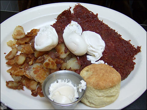 ... which was a burlap blanket of beef with poached egg pillows to sauce this salivation-worthy, shredded sheet. The potatoes were perfectly prepared with a maximum of surface area to create the crunchy edges of these smashing potatoes.