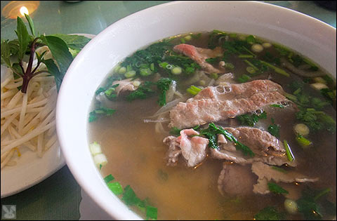 ... with broccoli, bean sprouts, chicken, chili, Thai basil, egg, carrots and bell peppers. This was a satisfying combo of crisp-tender vegetables and pasta, but we wondered if their pricing would suit those seeking a midday meal.