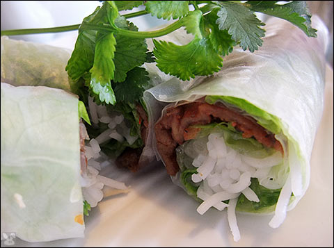 ... which were cashew canoes with fried noodles, cilantro, onion, tomato and shreds of carrot making for pleasantly crunchy, herbaceous lettuce wraps.