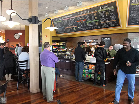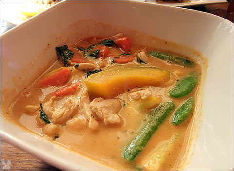 ... had pepper-tinged coconut milk covering carrots, sugar snap peas, mushrooms and Thai basil. The wedges of Japanese squash were underdone for my taste, but still okay with a side of brown rice ($2.50).