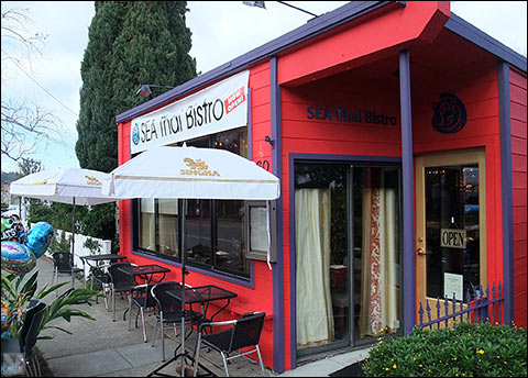 Sea Thai Bistro opened a few days ago in the former Simmer Restaurant space transforming the decor from a muted Autumnal feel to a fancy goldfish vibe.