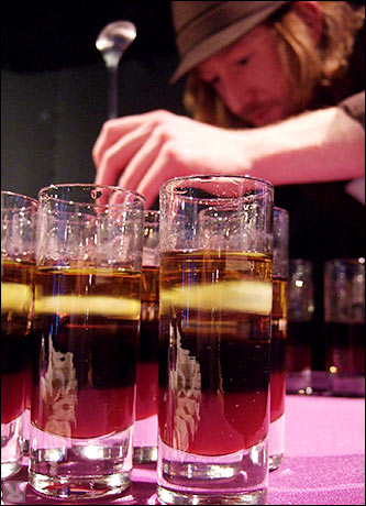 ... with St. George Spirits Absinthe cream and chocolate tinged with mint while Tim Zohn of Alembic layered absinthe, coffee liqueur, maraschino liqueur and grenadine in Pousse Cafés: