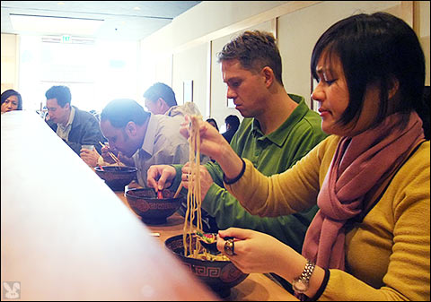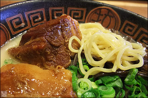 I made it to Santa Ramen for a noodley bowl of their "pork flavored" ramen ($7.95) and before they ran out of stewed premium pork ($4.50), like they did on my last visit: