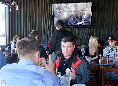The walls covered with mob and movie memorabilia get the juice flowing at this business of prime and crime.