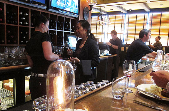 ... were quality quaffs at the bar of Brick and Bottle where we craved a cup of the tangy tomato soup that accompanied the grilled Swiss and braised shortrib sandwich ($15.00):