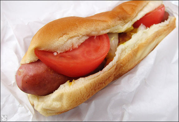 ... but they did have a good snap and tomato slices. There was no self serve condiment station so I wasn't able to tailor my skimpily dressed tube steak to my taste.