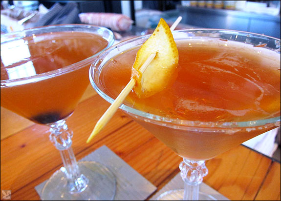 ... where whisky was rolled out in a smokey CAOL ILA thyme elixir ($18.00) made with Scotch, yellow chartreuse and thyme. This orange-ornamented potent potion was pirate-worthy along with their Blood and Sand ($12.00):
