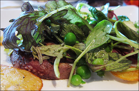 ... had green beans, bits of crisp, applewood smoked bacon and mache in another surf and turf tumble of tastiness.