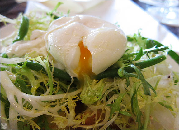 ... in a frisee fortress topped with a poached egg. This yolk-gilded, swine and swimmer salad was another winner.