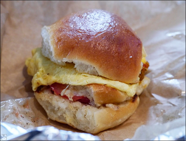 ... where we found this mound of swine and egg more successful than the veggie scramble ($8.75):