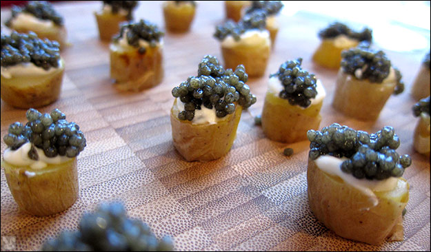 We lobbed this stering shellfish down after a bunch of caviar-capped spud stumps: