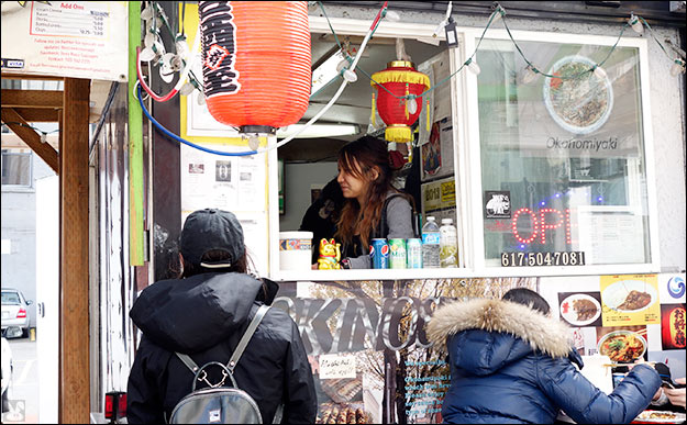 ... at Okinoshima food cart was a fine, frisbee of cabbage concealed by a mosaic of meat mingled with mayo and shoyu.