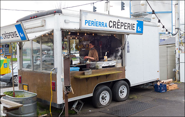 They were out of Gruyere, so we had a combo of chevre and mozzarella on our ham and fried egg crepe ($7.00):