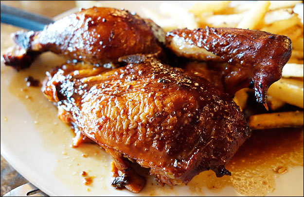 ... was a bronze breasted bird with succulent meat. Crisp fries fringed this chompable chick which we subsidized with an order of wings ($9.00):