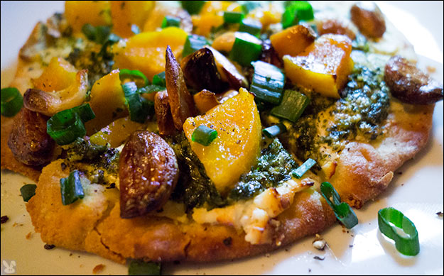 ... had roasted tomatoes, pine nuts and a ball of mozz pestoed together in a pleasing portion.