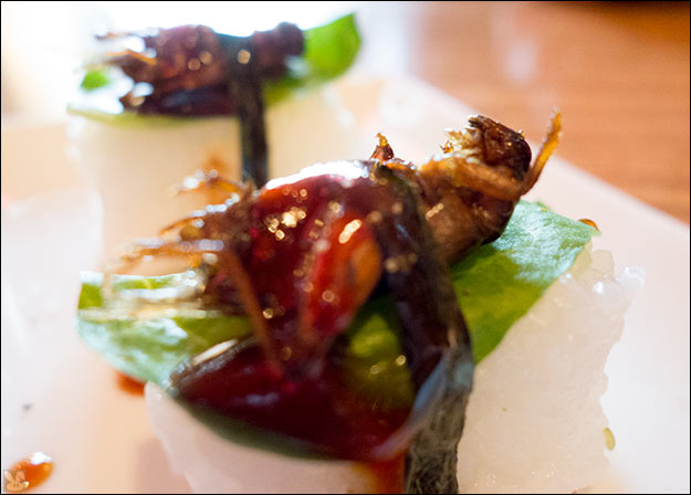 We went to see what the buzz was about and got some red cricket nigiri ($2.50 per piece):