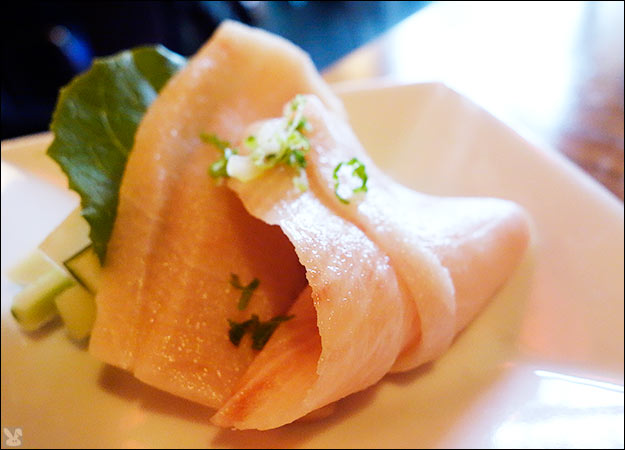 ... supported our Sapporos before a hamachi sashimi ($5.00):
