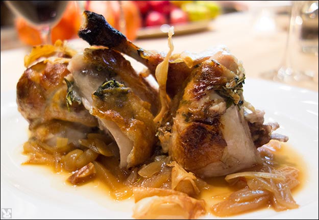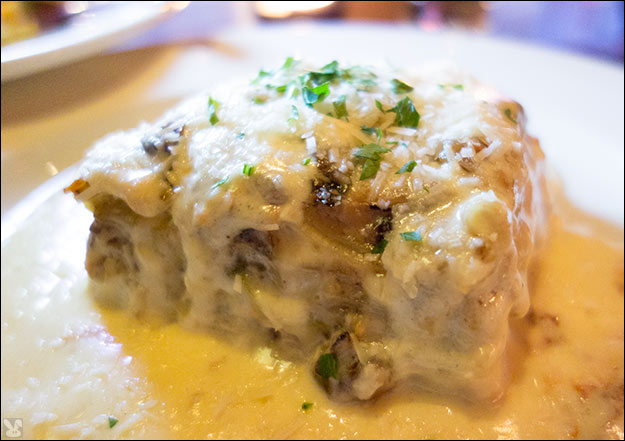 ... with Brussels sprouts and mushrooms bound with béchamel.