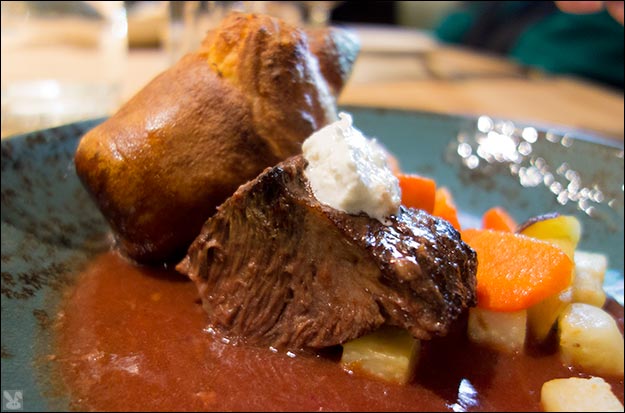 A sourdough crust added interest to this solid circle of meat and veg wedge in a friendly and funky St. John's bar.