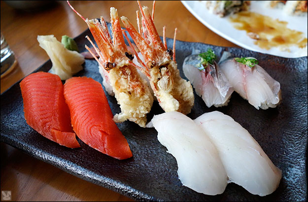 Benikzake, aji, hirame, hotate and amaebi nigiri ($3.50 - $7.00):