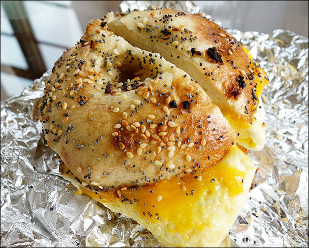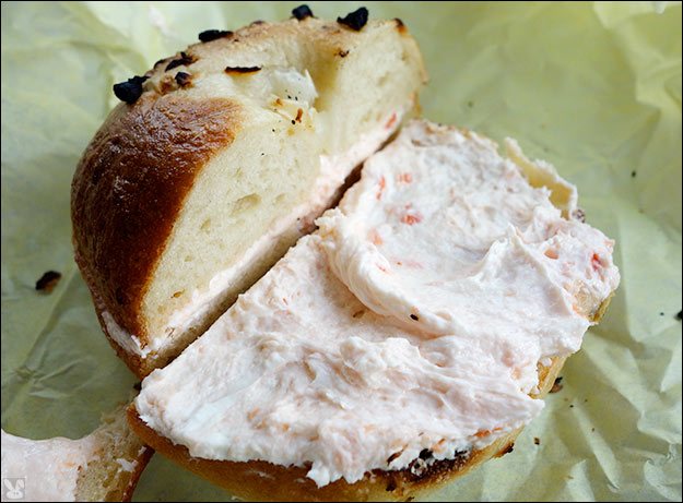 We resuscitated with an onion bagel schmeared with salmon cream cheese ($3.25):