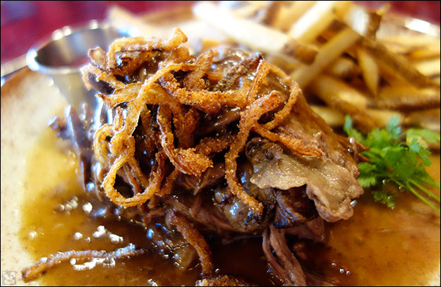 ... was a homey helping fringed with fries while a basket of Brussels sprouts ($4.00):