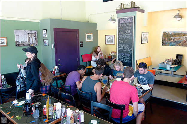 This daytime diner is directly across from the Scientology center to fortify stress testers and testees with solid eats.