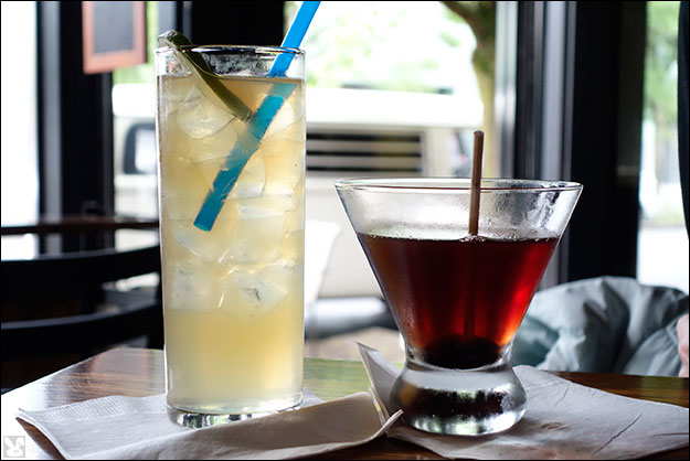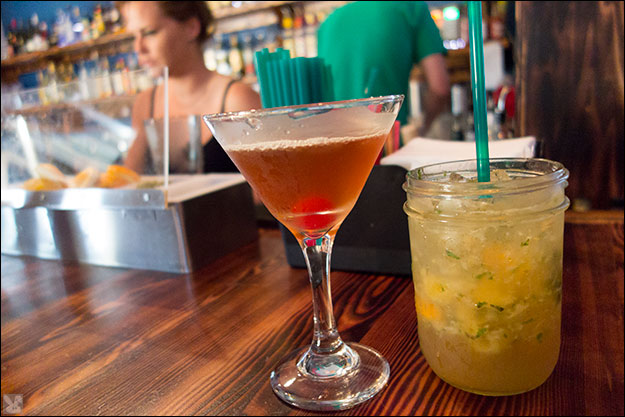 ($8.00) with bourbon, mint, citrus and bitters and a Manhattan: